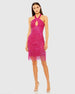 Make a statement in this eye-catching beaded mini dress. Its halter neckline and keyhole detail add a touch of glamour, making it a must-have for any special occasion.