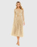 Beige Embellished Illusion High Neck Long Sleeve Dress